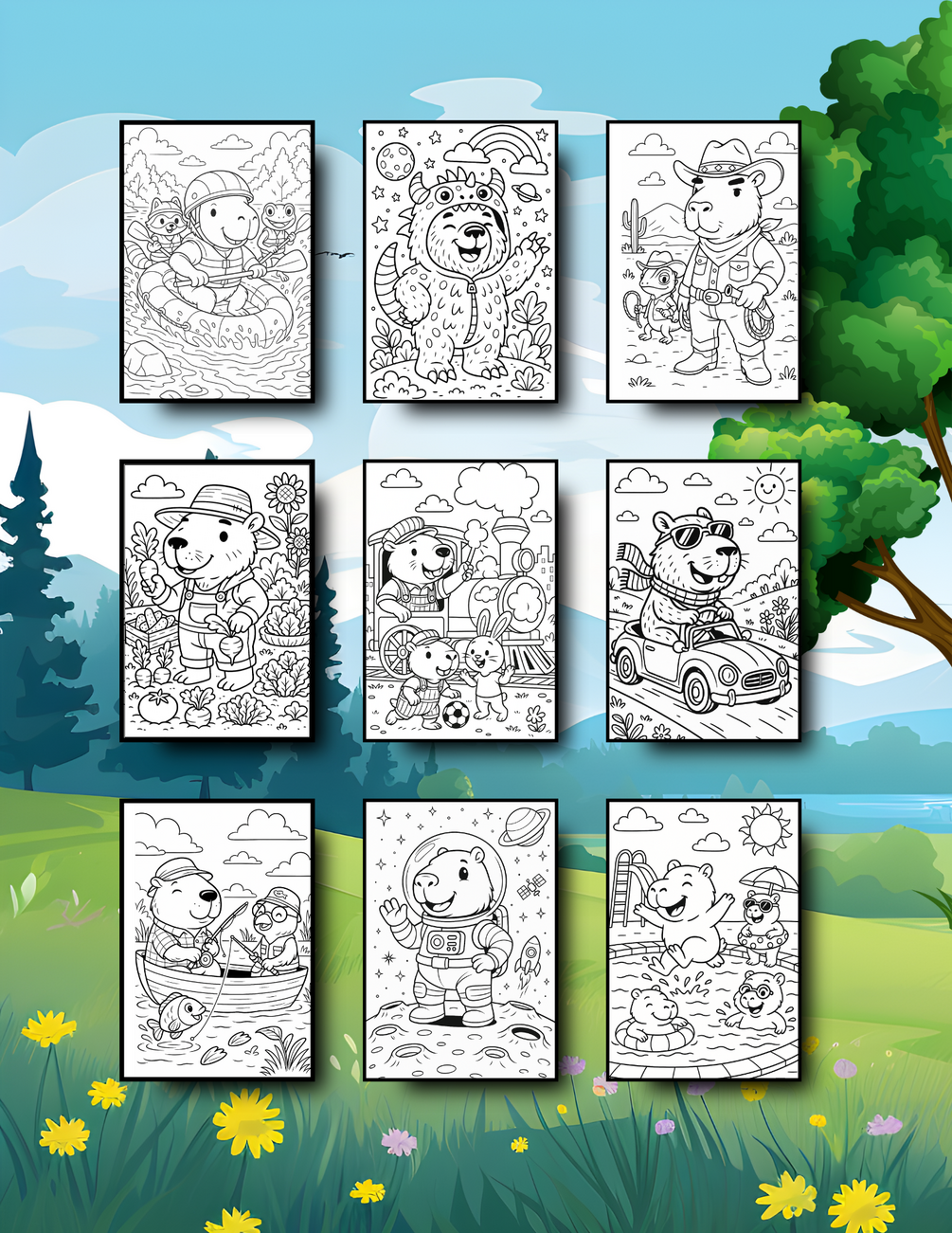 50 dibujos adorables de Capibara y sus amigos para imprimir y colorear en casa. ¡Diversión garantizada para niños!