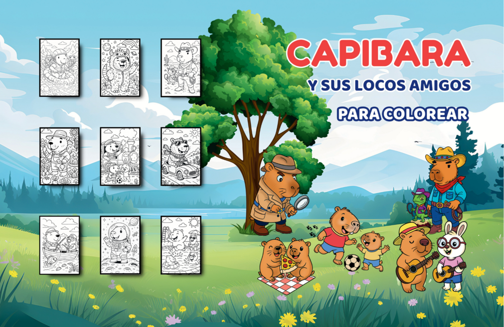 Libro para Colorear Digital – Capibara y sus Locos Amigos 🐾